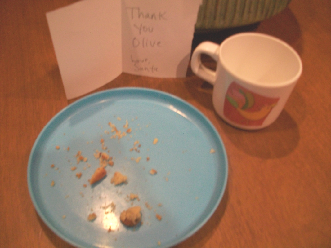 After the short one told me a week or so ago that I was “ruining it” and that she “gets to have magic too” I realized I had to back off on my anti-consumerism. My compromise on the Santa front had been to tell her that yes there was a Santa but that he focused on giving toys to boys and girls whose mom’s and dad’s and grandma’s and grandpa’s couldn’t afford to buy them gifts. I explained to her how lucky she is to have so many grandma’s and grandpa’s that would be giving her gifts. I wanted her to understand that gift giving was about love and consideration not writing out a list to a stranger who would drop some loot overnight! Fat chance – she is a kid surrounded by other kids and TV and all the consumerism crap that tells her to ask for stuff and to believe in Santa. Fine – you win short one I give in – Yes, Santa will be stopping by our house. She told me we’d have to be quick and build a chimney. I told her I’d leave him a note that the front door was open and he could just pop in that way. So it’s Christmas Eve and while I got my pleasure out of cooking the most amazing roast beast ever along with roasted vegetables (thank you Barefoot Contessa) She was thrilled to make cookies and leave a plate, with milk for Santa. The tall one in the house stayed out of it all and was happy that his Christmas wish came true with a batch of burned cookies. Only burned cookies say Christmas to him, anything without crusty black on it is just considered raw. So the short one got her Santa, the tall on got his burned cookies, I was filled with pride at my Christmas Eve dinner. All is right with the world. Now to start the “Santa” production once the short one is asleep – that will be another post. For now here is how the Eve went.