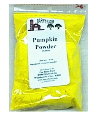 - Use dried pumpkin powder as a natural colorant to foods. This is especially helpful if you are trying to color yogurt coating for dog biscuits. See my post on pumpkins for pets from a few days ago.