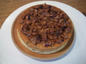 After receiving nearly 10 lbs of figs from a friend I had to begin the hunt for recipes. I love recipe hunting using a key ingredient in the search. The fig search turned up mostly desert and pork recipes which I will gladly participate in but I also found some great other items that I will try out too. Of coarse the first thing out of the tall one’s mouth was could you make a fig pie? I wasn’t really feeling up to rolling dough but I did agree to a cake. So my first fig recipe installment is a delicious fresh fig coffee cake. It is excellent the next day after hanging out in the fridge overnight and served as cold breakfast coffee cake.