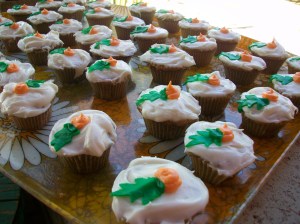 This weekend I was invited to a friends lovely garden party and she let me contribute by whipping up mini carrot cakes. They were so good and gone so quickly. I will not put into print what the tall one said about his love for these little gems. I’ll just say that he is a man who can be swayed with just the smallest amount of delicious sugar. I used a simple recipe which I’ll share here: Mini Carrot Cupcakes Recipe. To make the carrot top greens I made green fondant and cut them on my Cricut Cake machine using the Freshly Picked Cartridge.