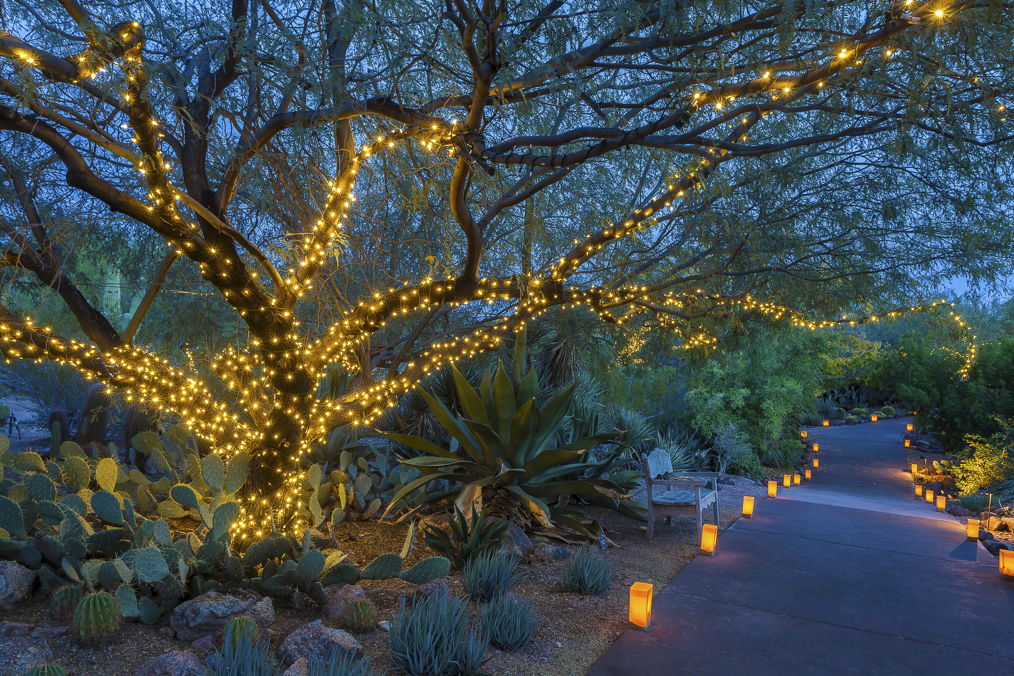During the holiday season, the Desert Botanical Gardens becomes a magical place, illuminating with 8,000 glowing lights at night. This year, the park will also feature the lighted artwork of Bruce Munro. Guests will be invited to walk the whimsical paths of the gardens, clutching a warm cup of cider while the sounds of handbells and a mariachi singers fill the air.