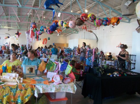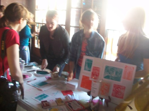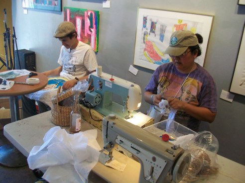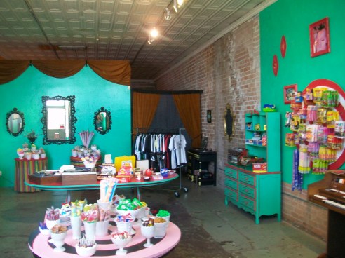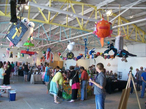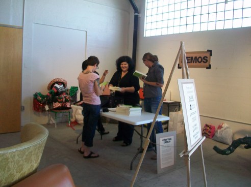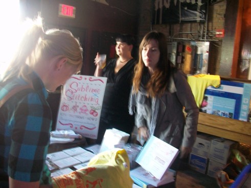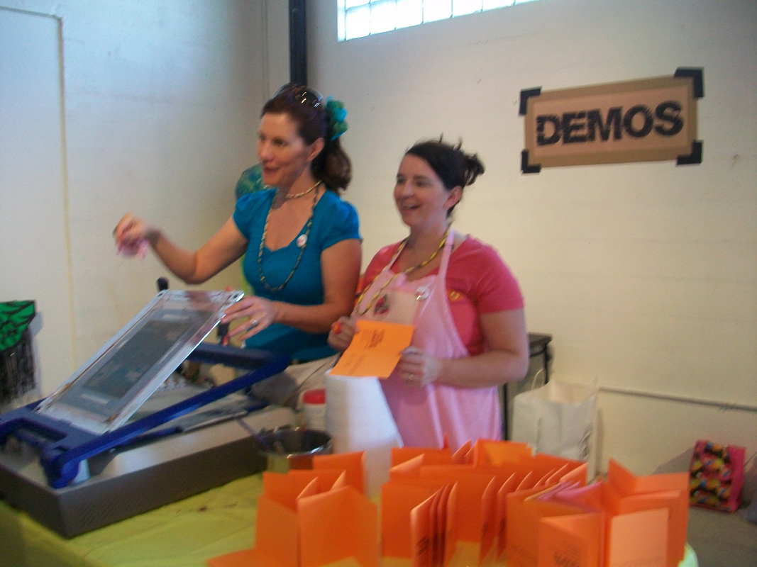 This weekend offered two fun crafty events in downtown Phoenix. I was at both demoing the YUDU. The first was the Coffee, Cookie, Crafts event at Braggs Pie Factory. Many vendors were selling their wares, kooky pinatas were hanging from the ceiling, there were cookies from Urban Cookies and demos from crafty types. The second event was the Swap-O-Rama at Trunk Space. Folks came out to this one with their used clothes in hand ready to re-work them. Then we screen printed on the new garment. I made an apron out of a tee shirt and my buddy Sarah made a fun Princess dress for the short one, who came along for the day. Check out the tee-shirt apron how to over on Lovely Lula. After the Swap sewing and screening we went next door to Sweets and Beats for a candy treat – yum! We had a really good time! Yea Phoenix for getting Crafty!